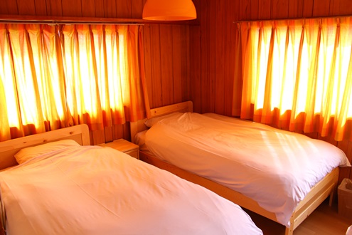 瀬戸内で採れる柑橘のオレンジ色をイメージしたお部屋。フローリング、シングルベッドタイプの洋室。3名部屋。
